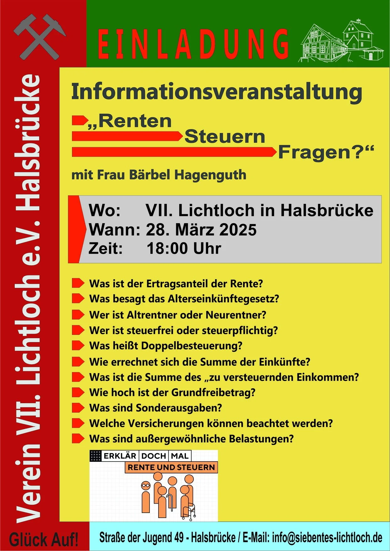 Zurück zu allen Events Infoveranstaltung Rente Freitag, 28. März 2025 18:00 20:00 Google Kalender ICS